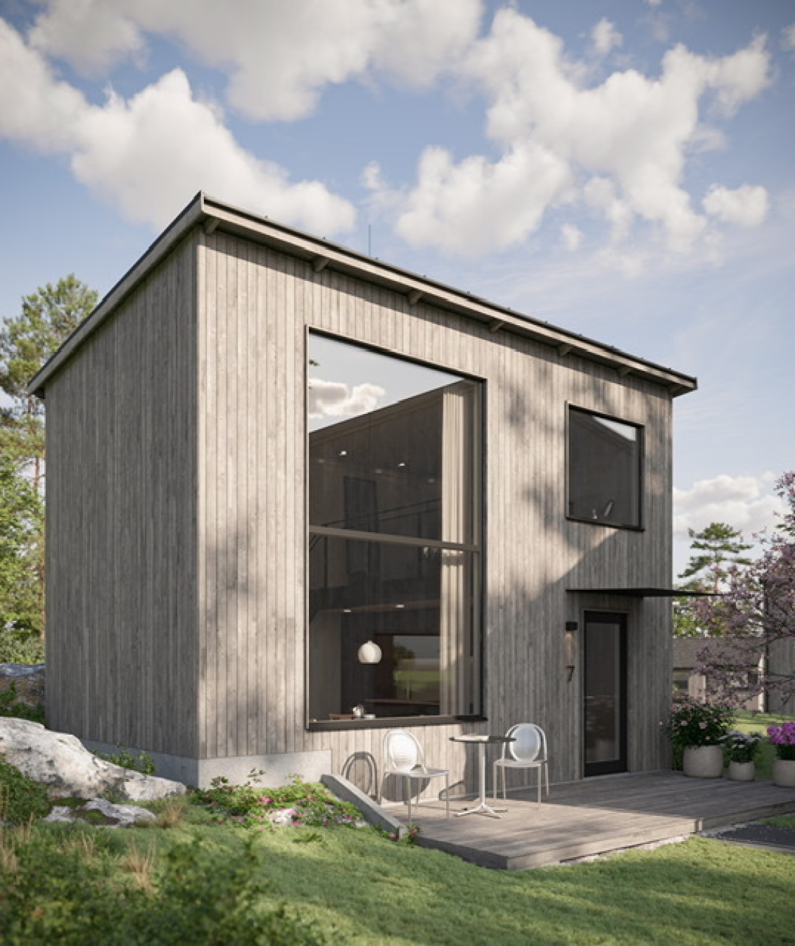 Stilren och stram arkitektur som passar perfekt in i omgivningen, Välkommen till ett bekvämt och mycket ytsmart boende där varje kvadratmeter har tagits till vara. Studiohus i form av minivilla om 25 kvm i brf-form. Här bor du tryggt i bostadsrättsform men med känslan av en egen villa, en perfekt kombination av bekvämlighet och frihet.