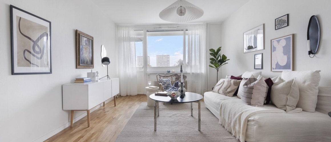 Bostaden erbjuder en genomtänkt planlösning med fina materialval och ett fantastiskt ljusinsläpp tack vare de stora fönsterpartierna. Den öppna rymden kompletteras av ett praktiskt sovloft som skapar extra utrymme och skapar ett yteffektivt boende med luftig oc hexklusiv känsla..
