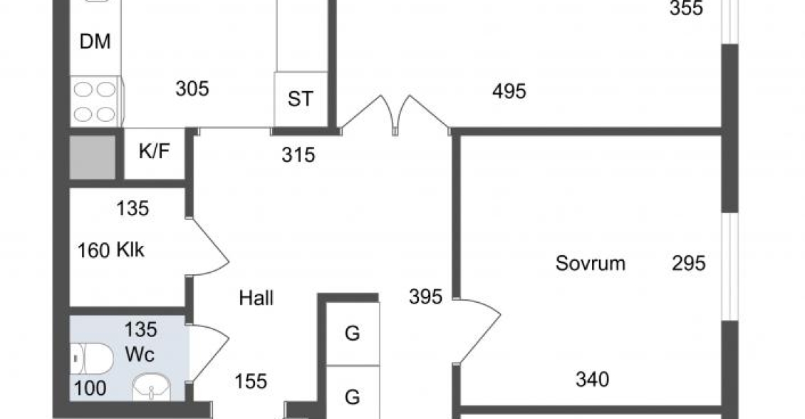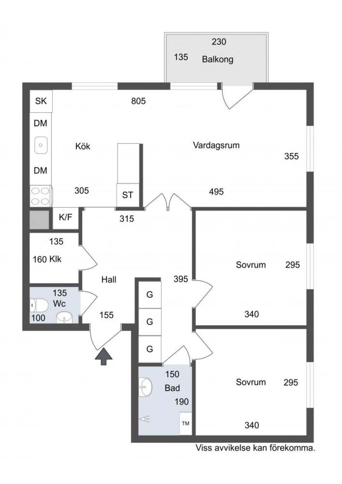 Samtliga areauppgifter är hämtade från bostadsrättsföreningen eller baserade på säljarens information. Dessa uppgifter kan av olika anledningar vara fel. Den köpare som tycker att arean har betydelse för köpet bör därför vidta en uppmätning.