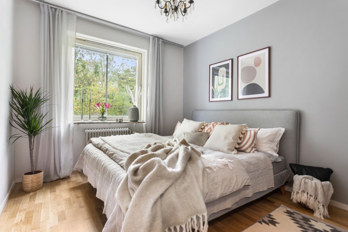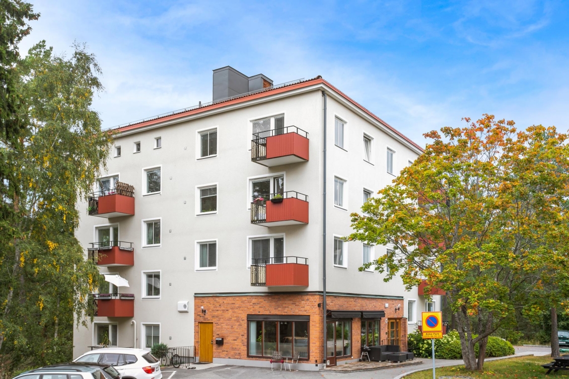Välkommen till en utmärkt 3:a med balkong i härligt söderläge och många soltimmar. Välskött, populär och skuldfri förening med låga avgifter. Lägenheten ligger en våning upp i förmånligt gavelläge och är därav ljus och trivsam året om. Utöver detta finns ett fullt utrustat och modernt kök i delvis öppen planlösning mot vardagsrummet som lätt kan möbleras med soffgrupp och mediamöbel. I den andra delen av lägenheten ligger två trivsamma sovrum i bra storlek med utsikt över den lummiga skogen samt intill ett badrum med dusch och egna tvättmöjligheter. I hallen finns en separat WC för dig och dina gäster. Mycket välplanerad bostad med gott om förvaringsutrymmen i inbyggd garderobsvägg, klädkammare, ett stort vindsförråd samt en matkällare.