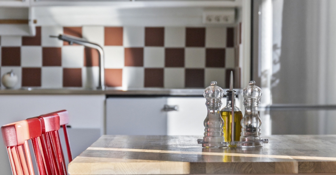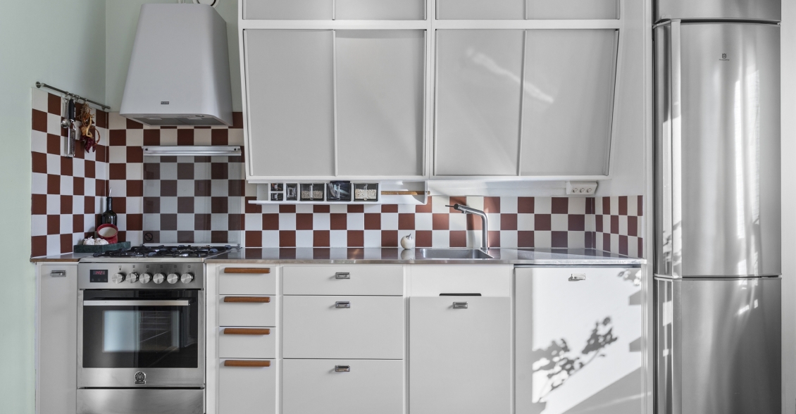 Klassiskt 50-tals kök som fått sig ett ansiktslyft men med alla gamla tidstypiska detaljer bevarade. Intill fönstret finns utrymme för en trevlig matplats. Köket är utrustat med nyare kyl/frys, ugn och köksfläkt.
