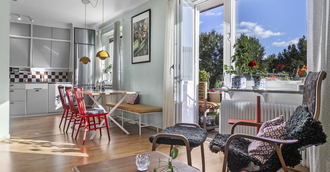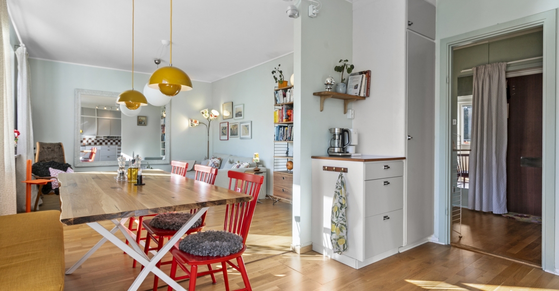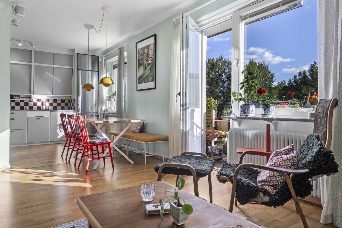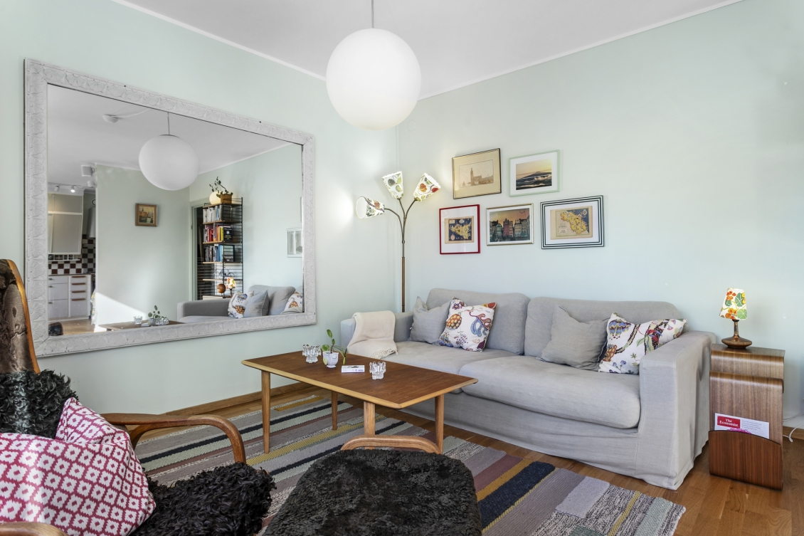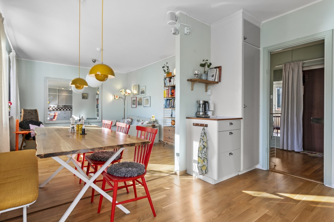 Välkommen till denna ljusa och trivsamma 2:a i gavelläge, högt upp i huset med soldränkt balkong och härliga vyer. Skuldfri förening med mycket låg avgift. Bostaden ligger på en lugn återvändsgata i trevliga kvarter och erbjuder möjligheten att skapa ett fantastiskt hem där du själv kan välja vilka tidstypiska detaljer du vill bevara. Bostaden disponeras med ett charmigt kök från 50-talet med överskåp i vinkel och nyare vitvaror, stambytt badrum från 2007 i vitt och grått med dusch och tvättmaskin, stort sovrum med en inbyggd garderob samt en stor hall med klädkammare. Till bostaden hör ett förråd.