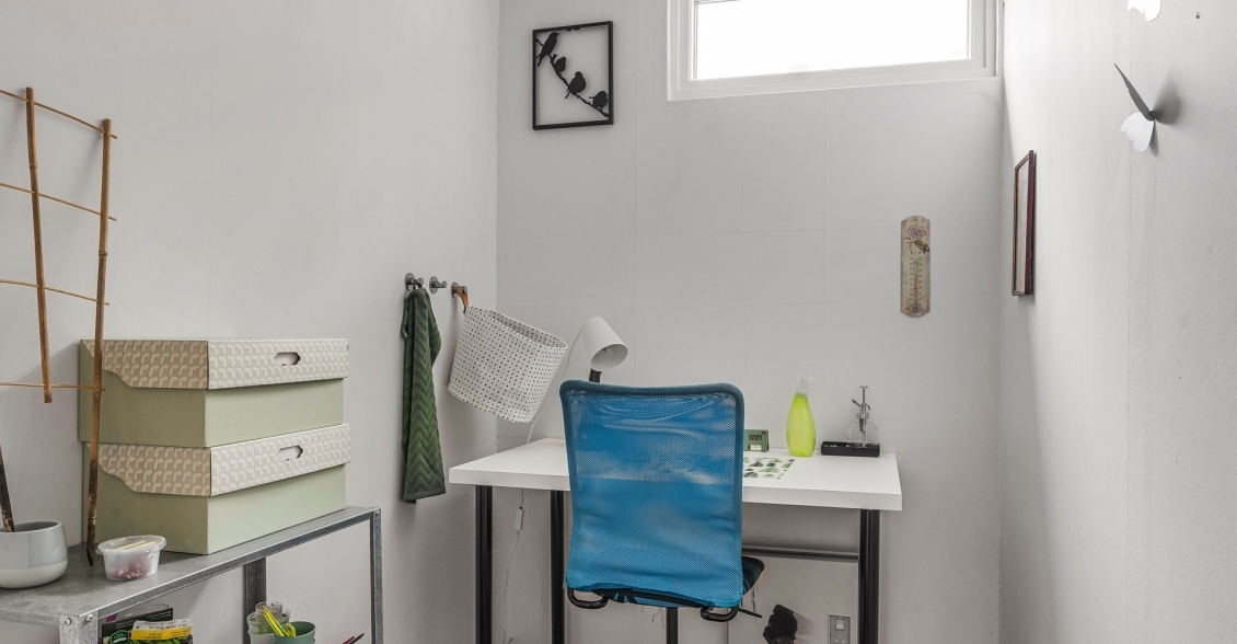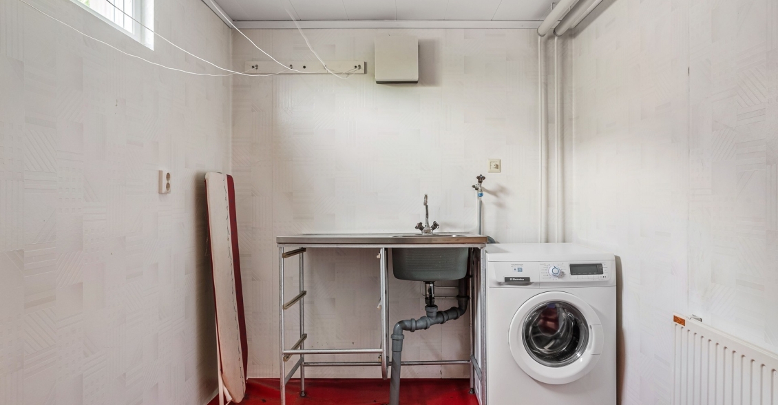 Tvättstuga Tvättmaskin. Här finns plats för klädvård och förvaring