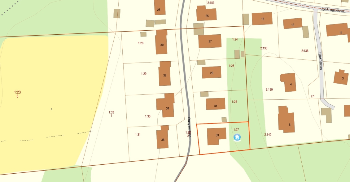 Samtliga areauppgifter är hämtade från fastighetsregistret eller baserade på säljarens information. Dessa uppgifter kan av olika anledningar vara fel. Den köpare som tycker att arean har betydelse för köpet bör därför vidta en uppmätning.