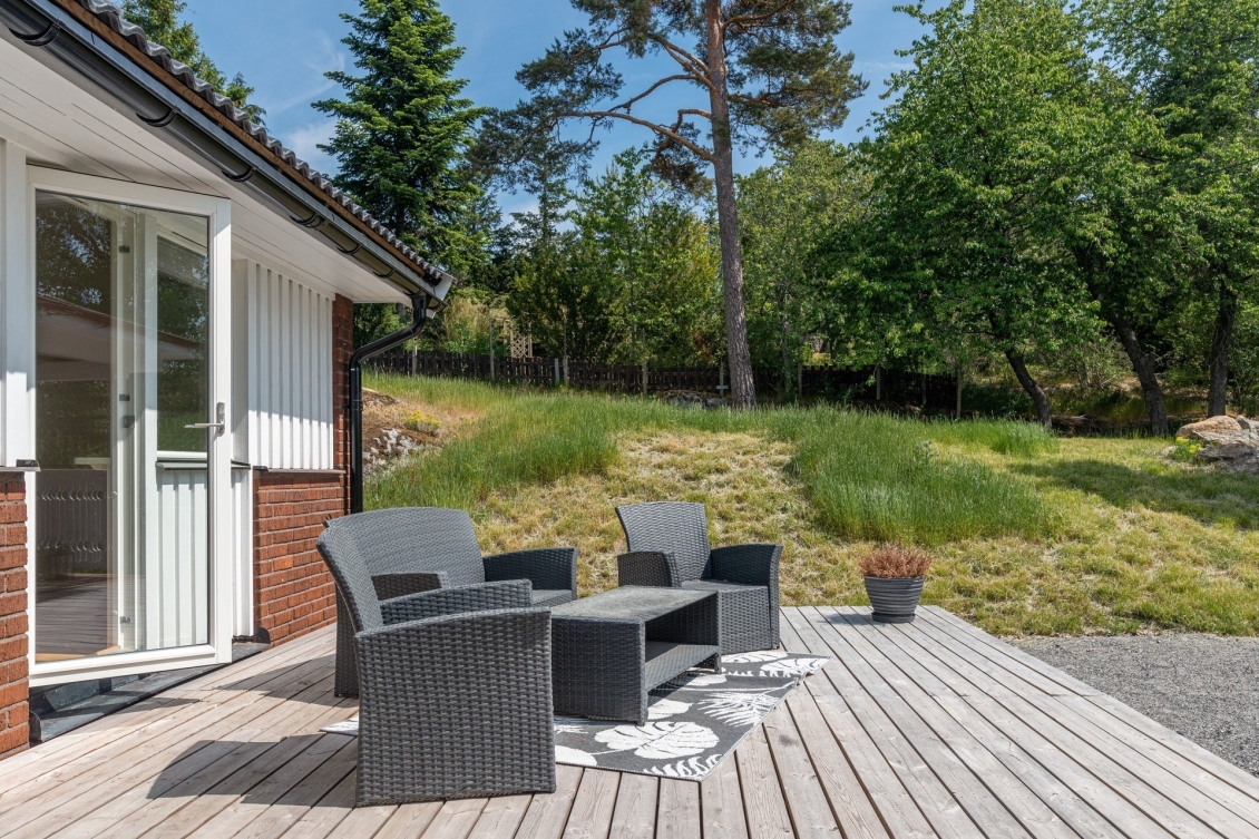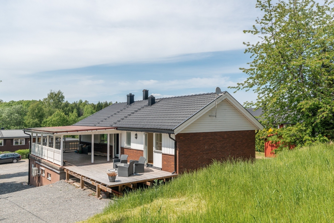 Längst ner på barnvänlig återvändsgata ligger denna soliga villa med stort altandäck i söder. En bostad som är i behov av ytskiktsrenovering men nyligen gemgått stora renoveringar så som nytt yttertak, ny fasad, nya fönster och ny dränering. Det som kvarstår är således den invändiga renoveringen av ytskikten.