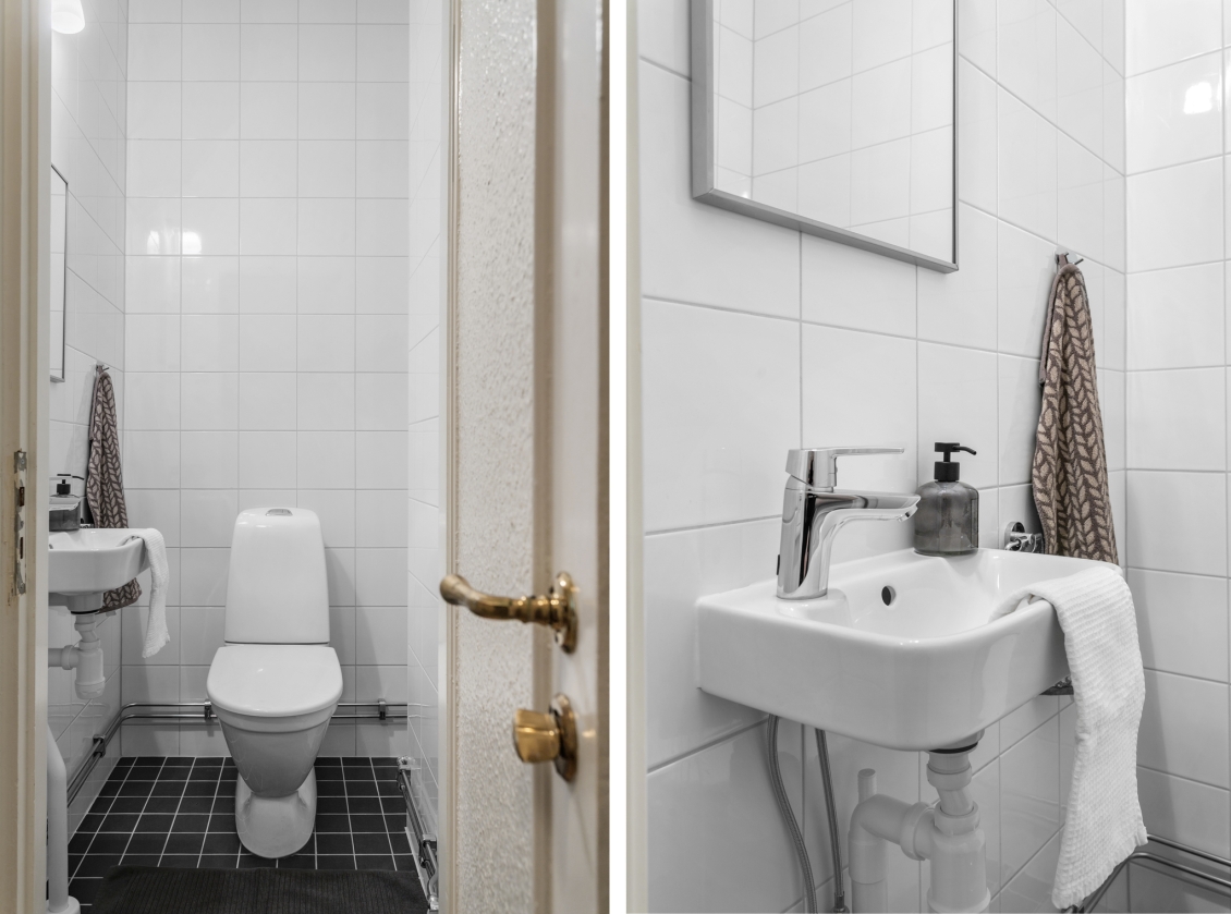 Samtliga areauppgifter är hämtade från bostadsrättsföreningen eller baserade på säljarens information. Dessa uppgifter kan av olika anledningar vara fel. Den köpare som tycker att arean har betydelse för köpet bör därför vidta en uppmätning.