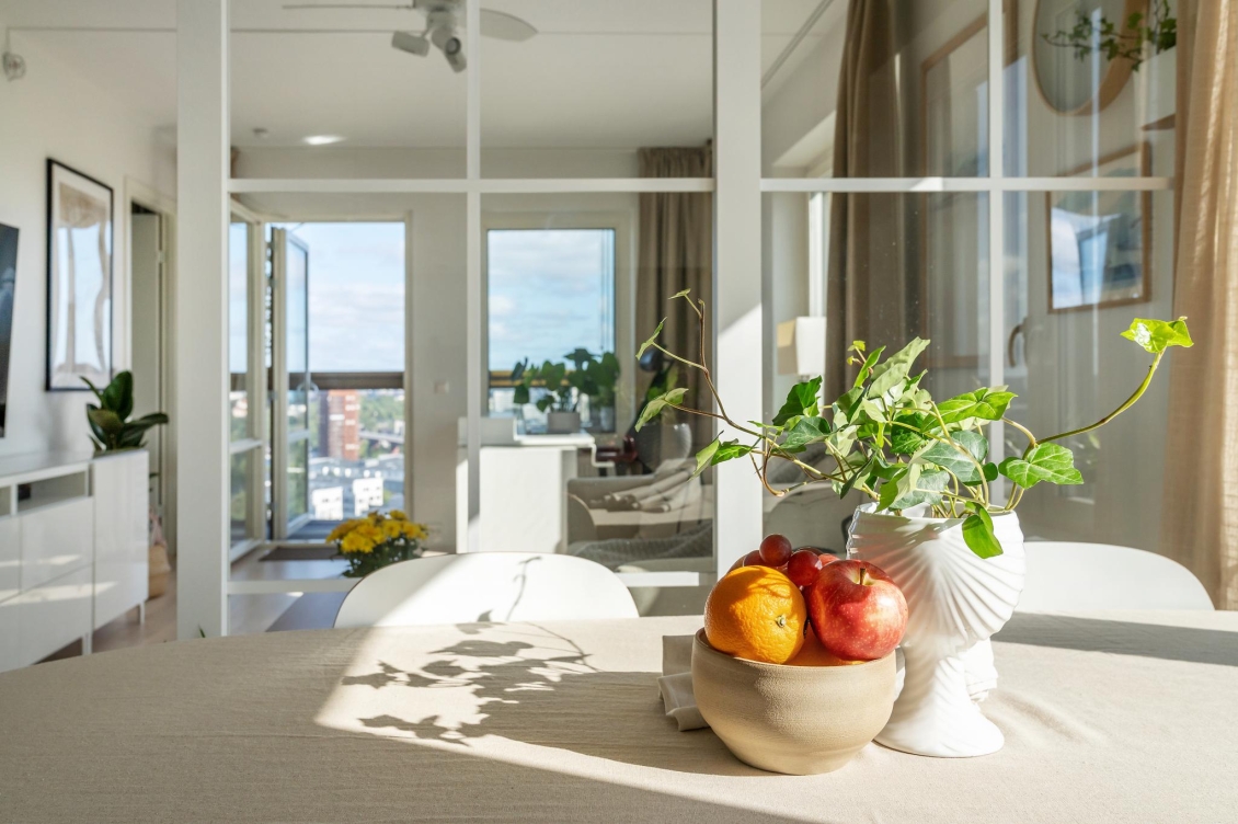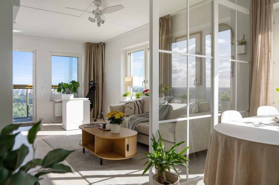 Stilren och ljus tvåa med inglasad balkong– högt läge med otrolig utsikt