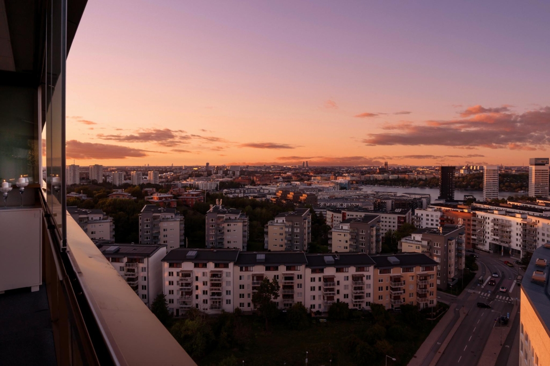 Balkong Rymlig och delvis vindskyddad balkong med gott om utrymme för balkongmöbler. Vidsträckt stadsvy och sjöutsikt. Takvärme och isolerande golvmatta som skyddar mot kyla.