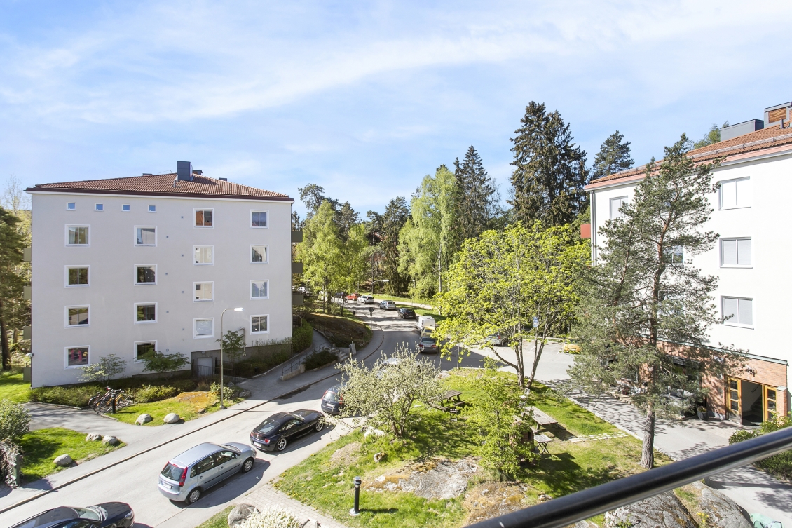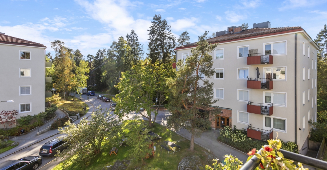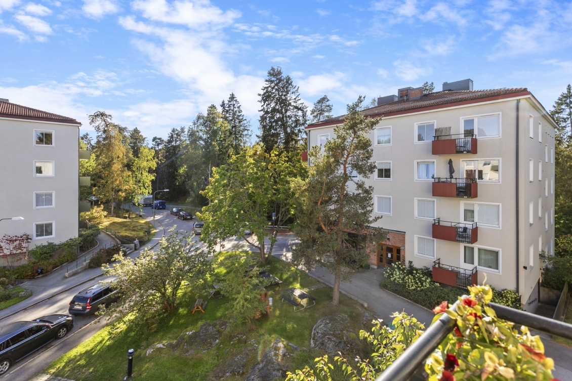 Fastigheterna är de tre sista husen på Postiljonsvägen och ligger på höjden omgivna av skog. Boende på övre våningsplanen har en fantastisk utsikt över Globen med omnejd. Det är ett lugnt område utan genomfartstrafik och tunnelbanan går man till på några minuter. Två gånger per år är det höst och vårstädning.