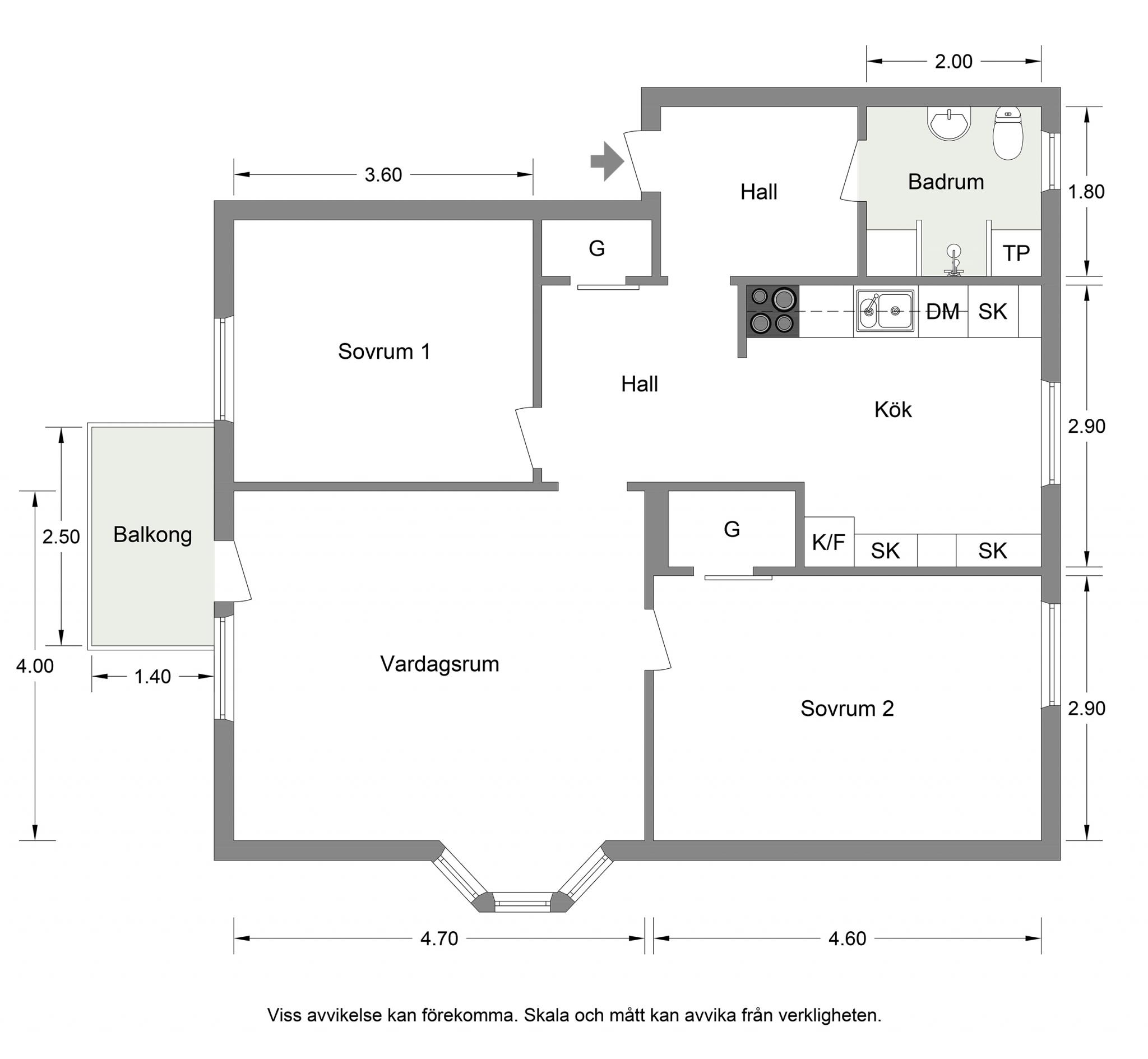 Samtliga areauppgifter är hämtade från bostadsrättsföreningen eller baserade på säljarens information. Dessa uppgifter kan av olika anledningar vara fel. Den köpare som tycker att arean har betydelse för köpet bör därför vidta en uppmätning.