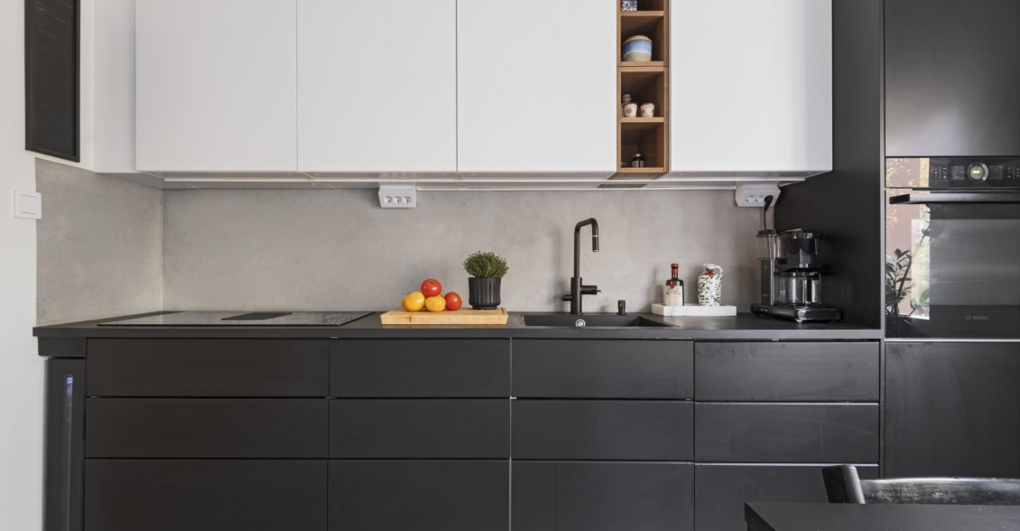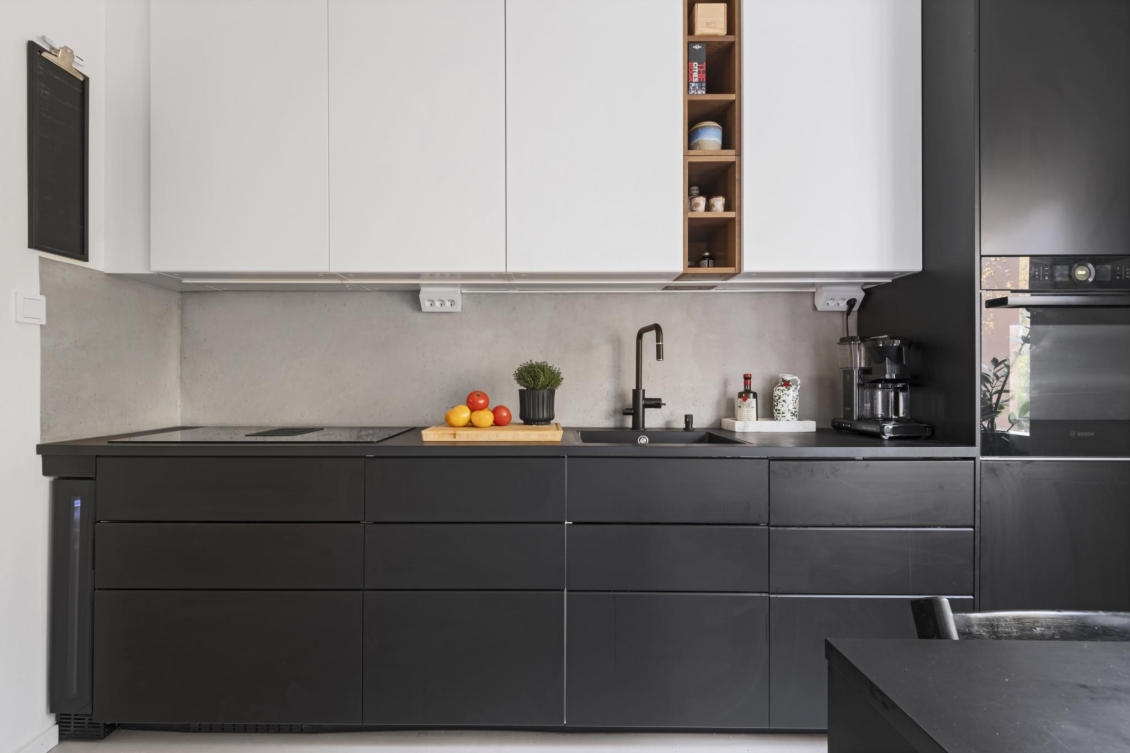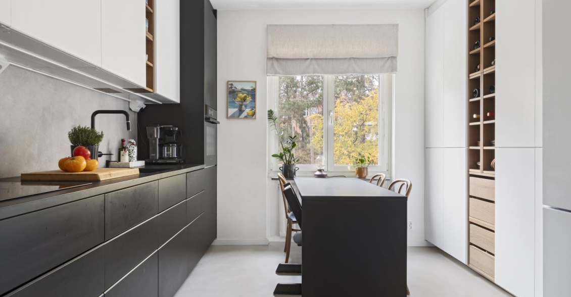 Det moderna köket från 2020 bjuder in till både matlagning och umgänge. Här finns inbyggd ugn, diskmaskin, kyl/frys och fina detaljer såsom ett elegant inbyggt vinställ – en perfekt kombination av funktion och estetik.