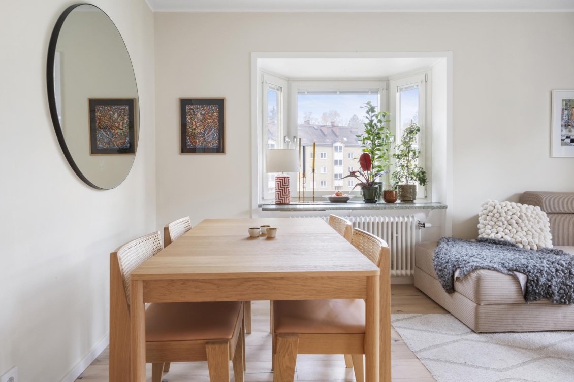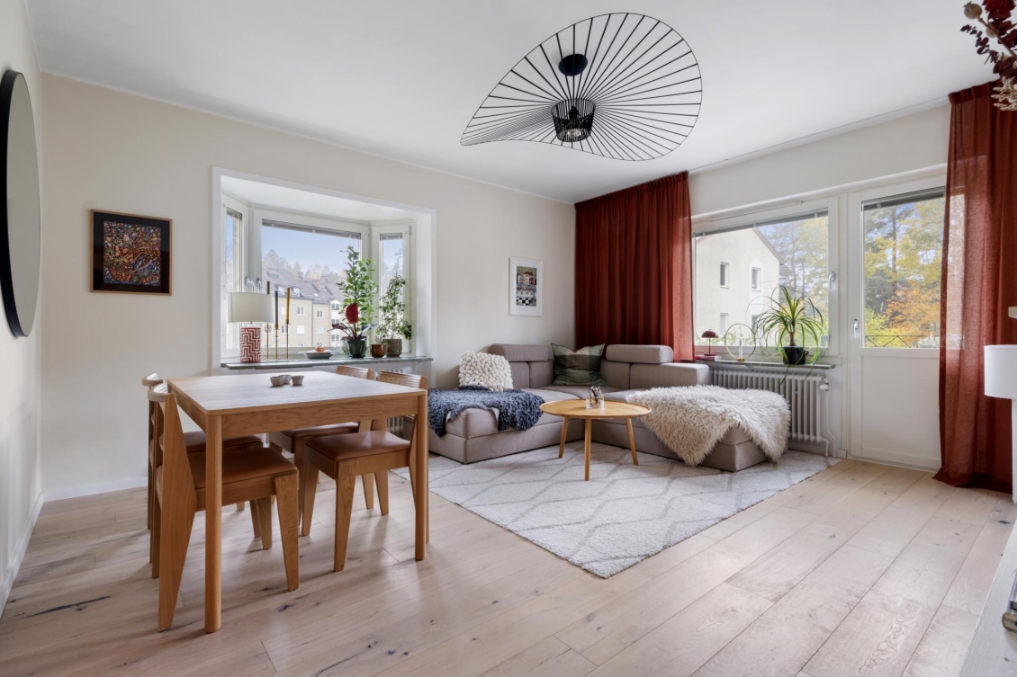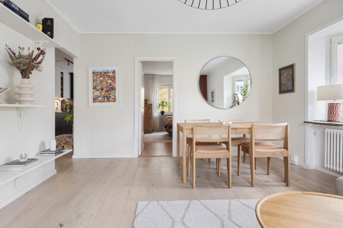Denna smakfullt renoverade trerummare kombinerar modern komfort med tidlös design. Varje detalj är genomtänkt och bidrar till en harmonisk helhet där kvalitet och estetik står i centrum. Bostaden präglas av generösa ljusinsläpp, stilrena materialval och en lugn, genomtänkt färgsättning som skapar en exklusiv och inbjudande atmosfär.