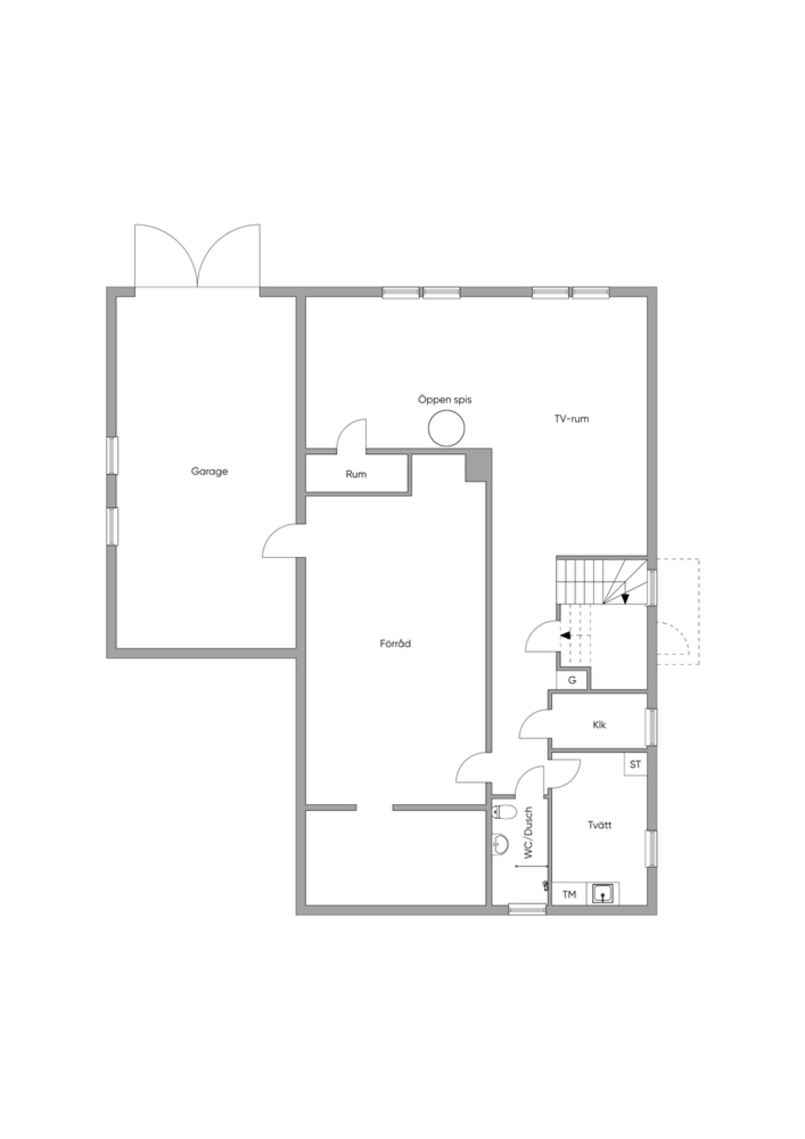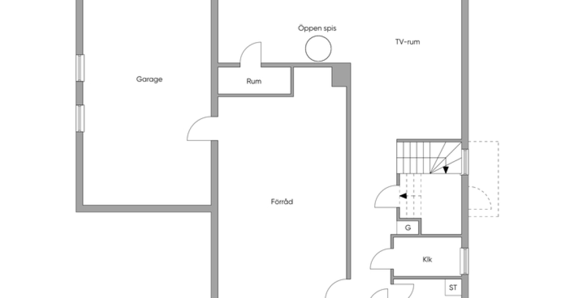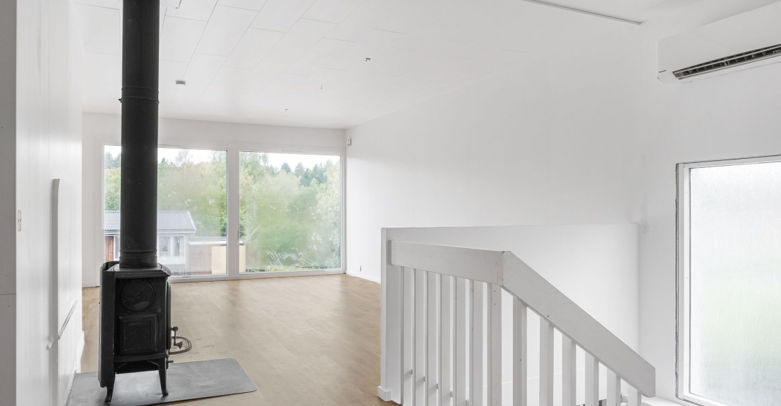 Allrum/gillestuga Detta utrymme kan t.ex. användas som sällskapsrum, bibliotek eller lekrum. Här finns bostadens andra eldstad.