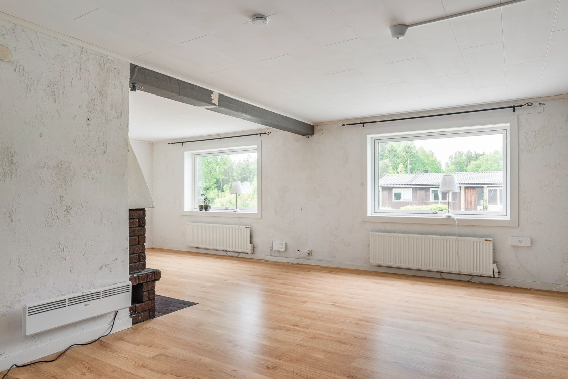 Längst ner på barnvänlig återvändsgata ligger denna soliga villa med stort altandäck i söder. En bostad som är i behov av ytskiktsrenovering men nyligen gemgått stora renoveringar så som nytt yttertak, ny fasad, nya fönster och ny dränering. Det som kvarstår är således den invändiga renoveringen av ytskikten.