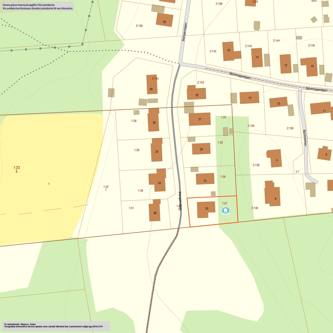 Samtliga areauppgifter är hämtade från fastighetsregistret eller baserade på säljarens information. Dessa uppgifter kan av olika anledningar vara fel. Den köpare som tycker att arean har betydelse för köpet bör därför vidta en uppmätning.