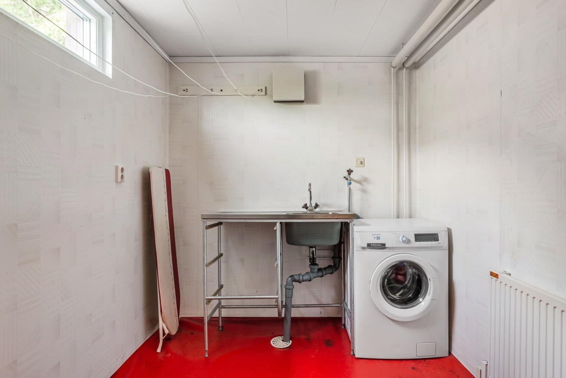 Tvättstuga Tvättmaskin. Här finns plats för klädvård och förvaring