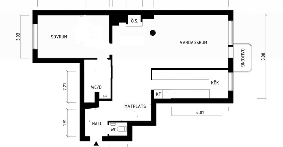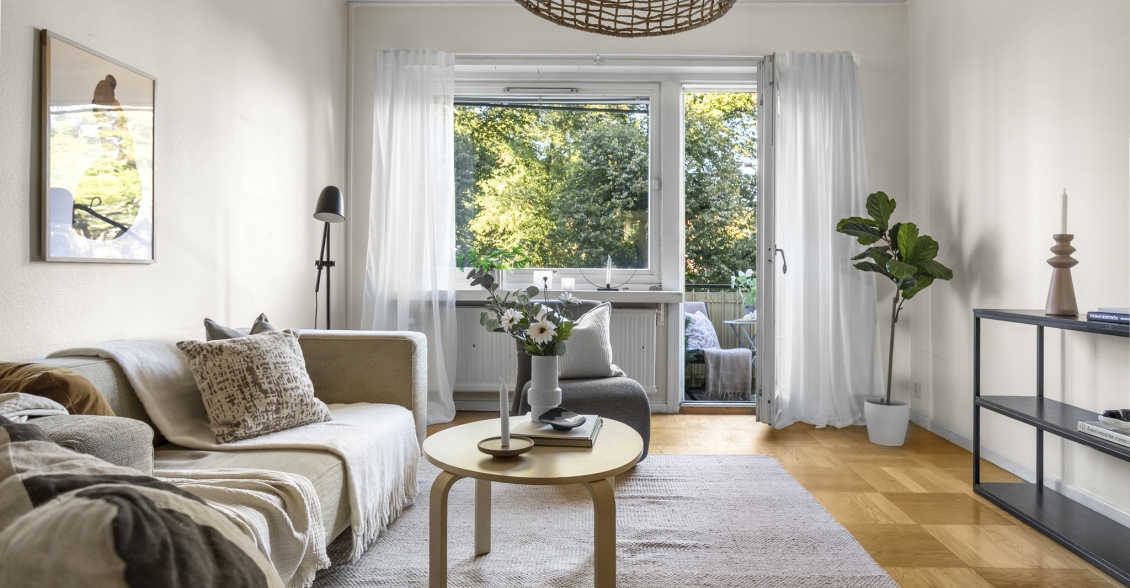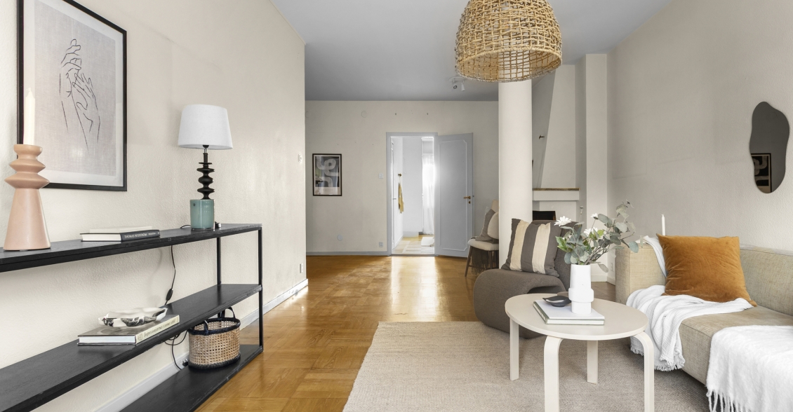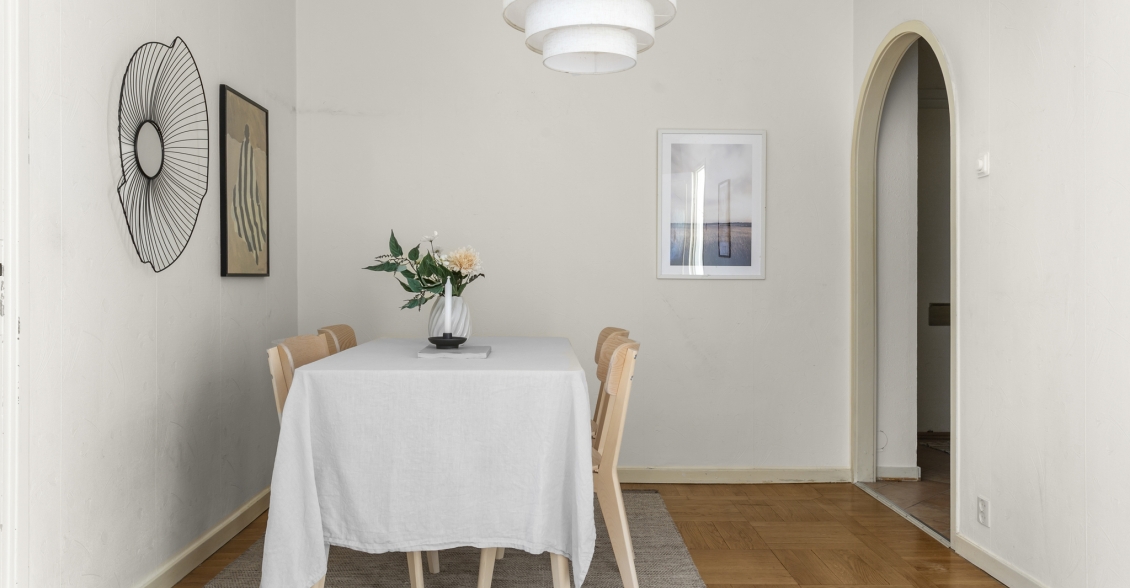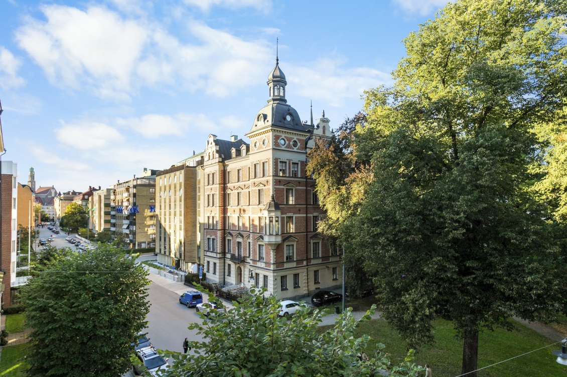 Bostaden mäter hela 80kvm och går därför att bygga om till en trea, eller kanske en tvåa med öppen planlösning mellan kök och vardagsrum och sammanhållen utsikt över Stureparken.