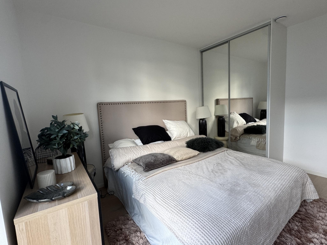 Ett rofyllt sovrum med garderober.